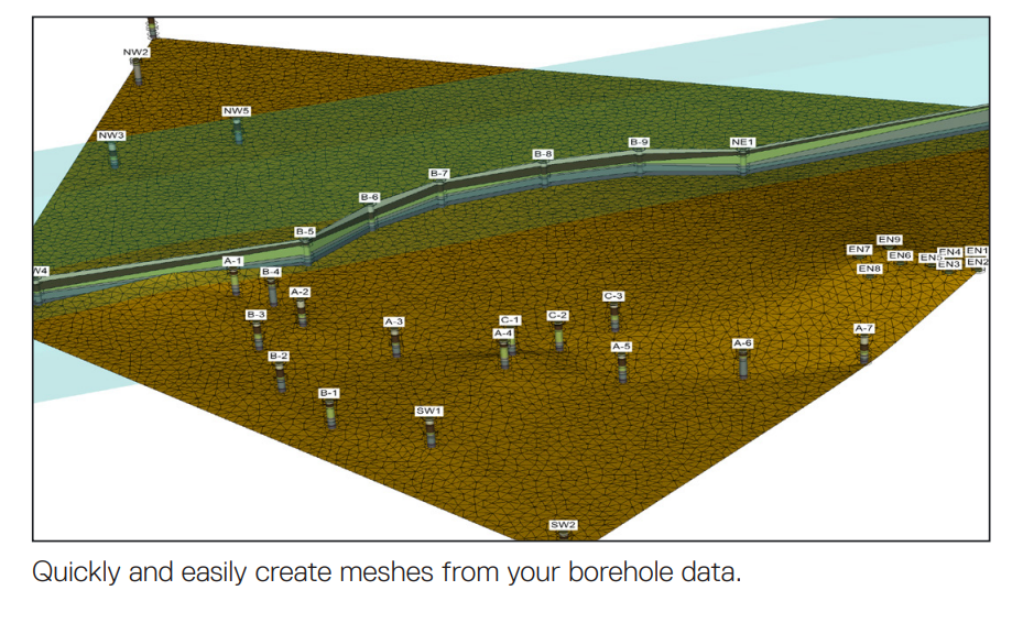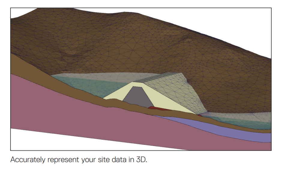 PLAXIS Designer gives you the ability to organize your geotechnical site data and use complex geometry to create conceptual models. The application allows you to overcome the challenge of merging and interpreting your data from various sources. Geology and water conditions can be imported from OpenGround® Cloud boreholes, Leapfrog® geological volumes, sensemetrics® piezometers, meshed topology surfaces, and data from many common file types. 3D geometry can be exported for geotechnical analysis in the form of 2D slices or as full 3D models. PLAXIS Designer reduces overall design and prototyping time and efficiently completes analysis. Your time and expertise are valuable, and you should spend it by finding better solutions through analysis, not by designing geometry.